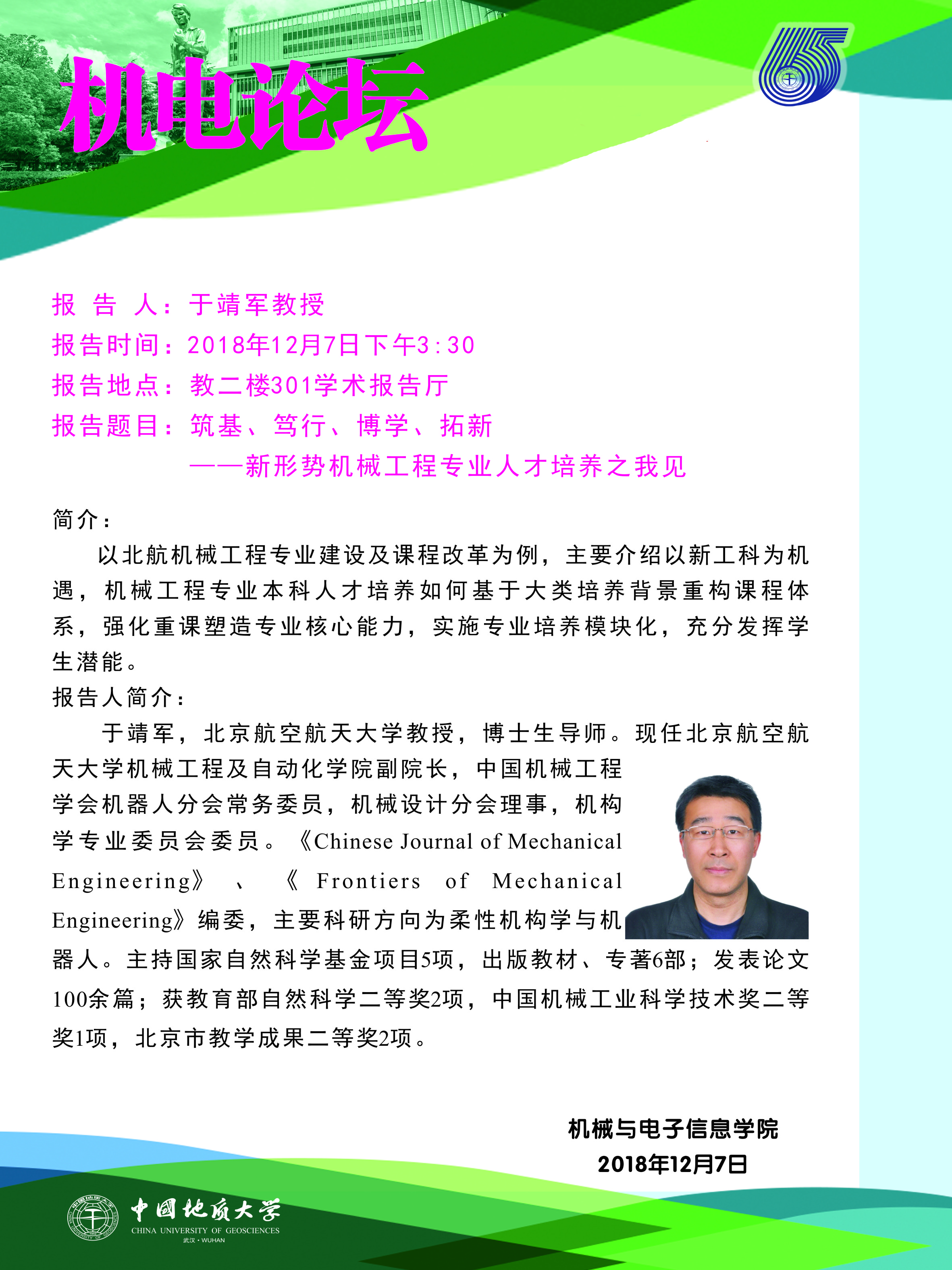 机电论坛:北航于靖军教授来公司作报告