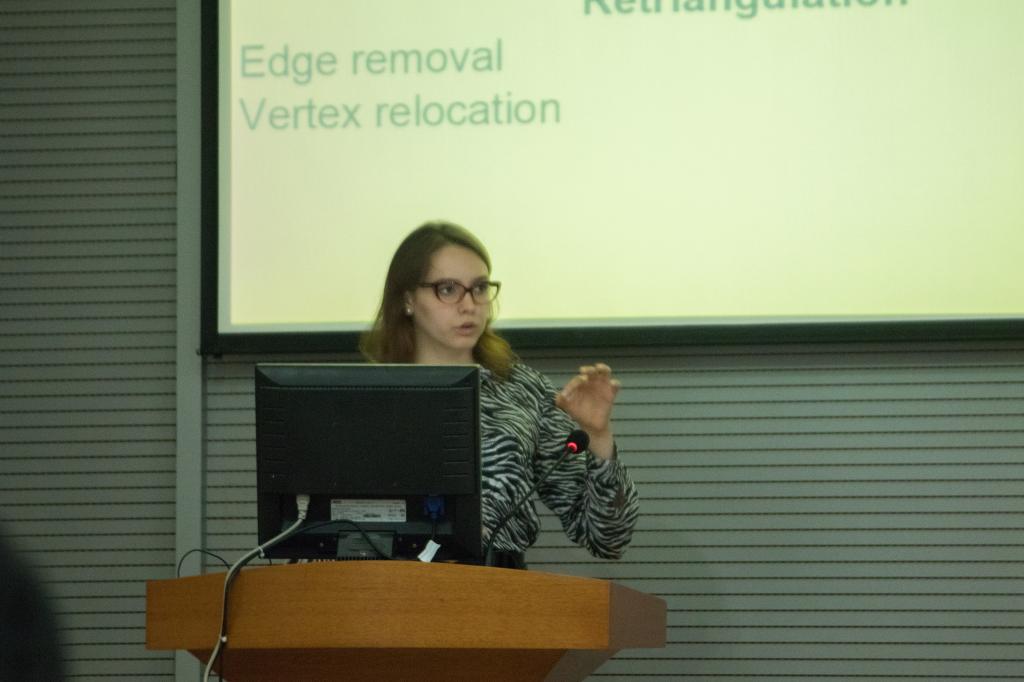 首先,王华副董事长为本此论坛发表致辞。王董事长热情洋溢的致辞,让法国专家和在场师生们提前感受到了武汉夏天般的温暖,同时也饱含着对我们机电公司的殷殷期盼。接下来法国Houman Borouchaki教授、Olesya博士以及5名留法归国的青年学者依次为我们呈现了精彩报告。报告主要介绍了三维网格的自动生成算法以及多种三维建模底层算法的开发。专家们的精彩报告引起了在座师生的极大兴趣,现场气氛十分活跃。最后丁华锋经理为本次会议做了总结发言。