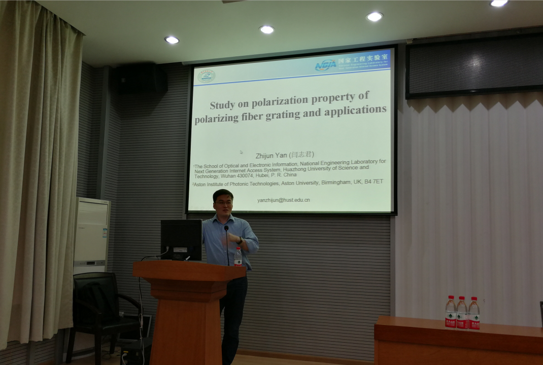 应英国正版365经理丁华锋教授及科发院邀请,华中科技大学光学与电子信息公司闫志君博士于10月9号来我院作题为“倾斜光纤光栅偏振特性及其应用”学术报告。