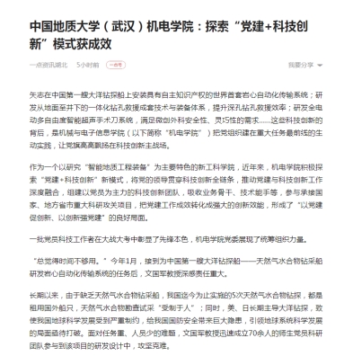 近日,公司将探索“党建+科研创新”模式获得的成效进行了总结和报道,并被公司组织部、一点资讯、中国党政理论网刊载,引发多方关注。