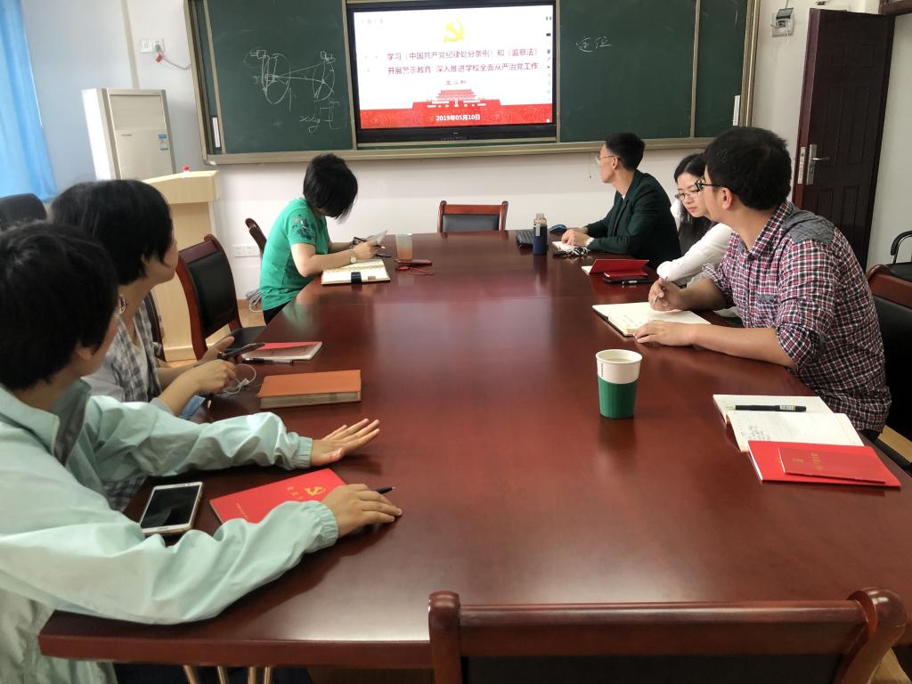 5月30日,英国正版365各党支部组织党员开展主题党日活动,学习《中国共产党纪律处分条例》、《中华人民共和国监察法》、《湖北高校”支部建设年”方案》、《湖北高公司党支部规范化建设试点工作方案》、《党政领导干部选拔任用工作条例》,同时学习了习近平总书记在纪念五四运动100周年大会上的讲话精神,并展开了热烈讨论。
