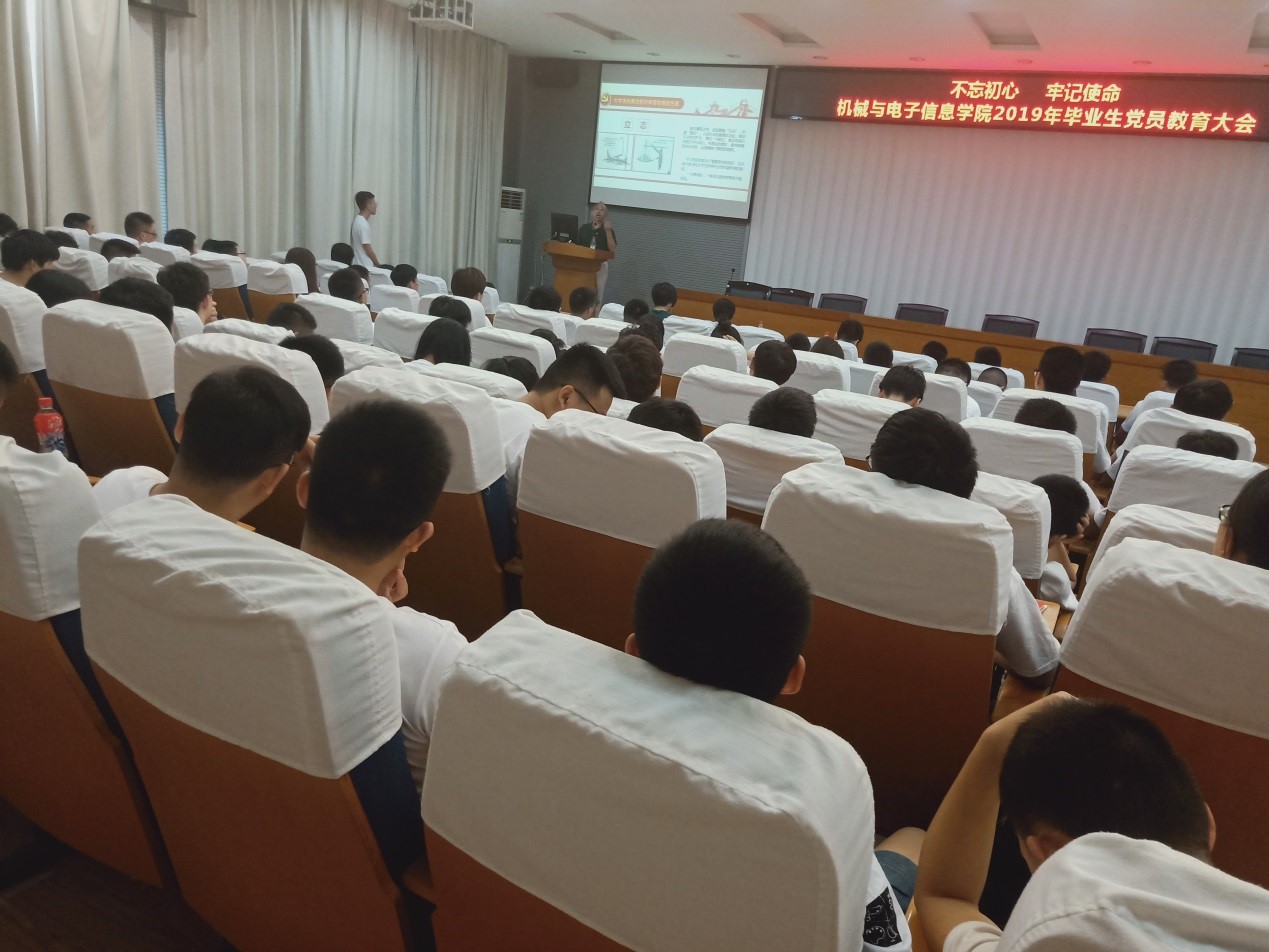 (通讯员 张晓庆)不忘初心,牢记使命。6月24日下午,机电公司2019届毕业生党员教育大会在教二楼301举行。公司党委书记瞿祥华、党建辅导员黄梅娇、2019届本科毕业生辅导员杜育及公司全体2019届毕业生党员参加会议,会议由公司党委副书记于晓舟主持。