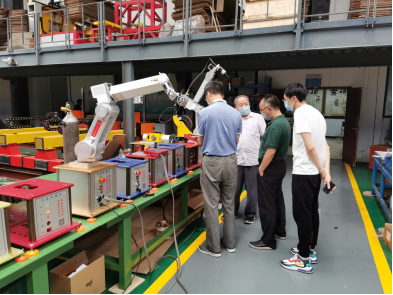 瞿祥华书记代表公司感谢武汉蓝讯科技在教学、科研等方面给予公司宝贵的支持。表示将切实推进公司与蓝讯科技合作,将整合公司的科研团队,促进公司教师结合企业实际需要,参与到蓝讯科技的实际项目中进行科学研究。指出后续希望可以将蓝讯科技作为新生入学教育及员工实践教育基地,对开阔员工视野、提高科研能力有很大帮助。在参观工业机器人产线时,瞿祥华书记也建议武汉蓝讯科技可申请教育部产教融合,衔接和推广职业培训,增加工业机器人的实际功能、趣味功能和虚拟现实功能,并提出公司教师参与蓝讯科技项目研发可实现共赢。李波副经理指出将切实推动公司教学实践环节改革,将员工的实习结合到企业的实际需要中,整合公司教师、员工共同成为工业机器人研发力量,并进一步表示公司教师在机器人协同、虚拟现实等方面的研究将助力武汉蓝讯科技品牌力量的提升。