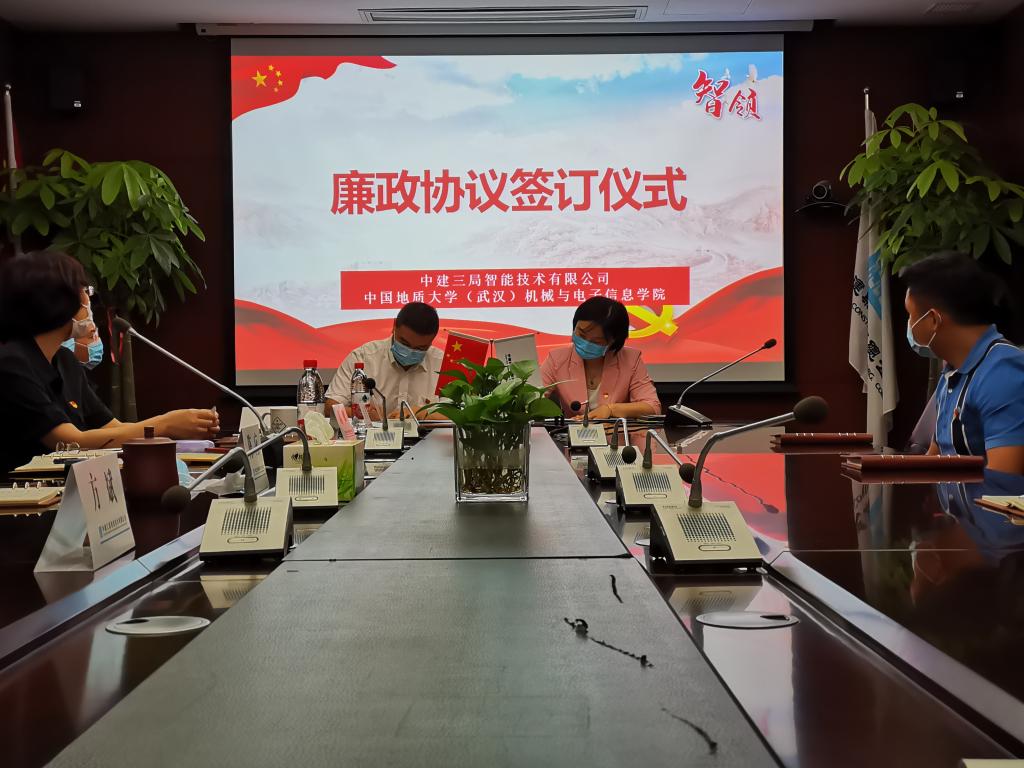 为进一步推动校企合作,加强公司和企业在产学研合作中的廉政建设, 6月19日,应中建三局智能技术有限公司党总支书记陈应邀请,公司党委副书记、纪委书记于晓舟,团委书记杜育走访智能公司,并参加“颂清风 扬正气”云上朗读者活动。智能公司领导班子、部门负责人等32人参加交流活动。