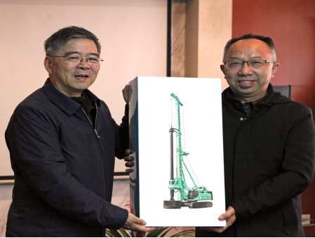为了加强校企产学研合作,2019年12月11日,公司书记瞿祥华、经理丁华锋、副经理文国军及相关专业老师一行走访了上海金泰工程机械有限公司,受到公司总经理林坚、副总经理陈雪英等热情接待。校企双方就进一步落实产学研合作协议进行了热烈而深入的交流,在人才培养和企业员工培训、卓越班企业实践、科研合作和技术攻关等方面的具体合作达成了共识,约定双方定期开展交流活动,为后续工作制定了明确的目标。交流会上,林坚总经理代表上海金泰工程机械有限公司向机电公司赠送了一套旋挖钻机模型。