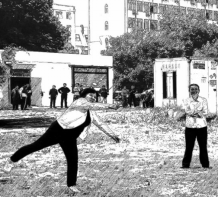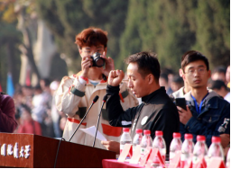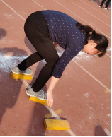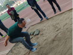 图3 机电公司教师代表在主席台宣誓 图4瞿祥华书记立定跳远比赛