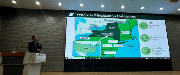 宾汉姆顿大学作为美国知名公立研究型大学,素有“公立常春藤”美誉,其系统工程与智能制造领域研究享誉国际。宣讲会上,汪勇教授详细介绍了该校硕士/博士项目的培养模式、交叉学科特色及工业合作实验室资源,重点解析“科研能力提升-奖学金申请-职业发展支持”全链条培养机制,并通过往届中国员工成功案例,生动展现项目就业竞争力。