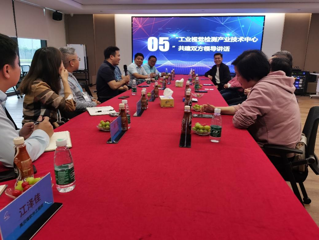 2022年7月机电公司与东莞市达瑞电子股份有限公司及旗下全资子公司东莞市高贝瑞自动化科技有限公司合作共建“工业视觉检测产业技术创新中心”,同时,双方签署了针对工业视觉检测应用方面的技术攻关战略合作协议,本次交流旨在对双方前期合作情况进行交流总结,促进校企全方位合作,加快推进工业视觉检测技术的落地应用,同时举行产业创新中心授牌仪式。