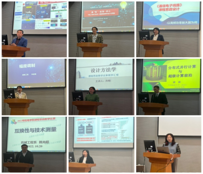 (通讯员:陈雪艳)为进一步推进公司课程思政建设,实现“学科教学”向“学科教育”的转变,不忘教育初心,牢记育人使命,实现教书和育人相统一,真正落实立德树人的根本任务,公司于2022年10月20日下午在教二楼301举办了全院“课程思政”教学竞赛。电子信息、机械工程、工业设计、通信工程各选派2名教师,工程教学实习中心选派1名教师参加了此次教学竞赛。大赛邀请了本科生院副经理孟霞、校级督导吴国平、院级督导叶敦范、校青年教师讲课比赛一等奖获得者杜育,公司党委书记瞿祥华全程参与指导。全院教师进行了现场观摩交流。
