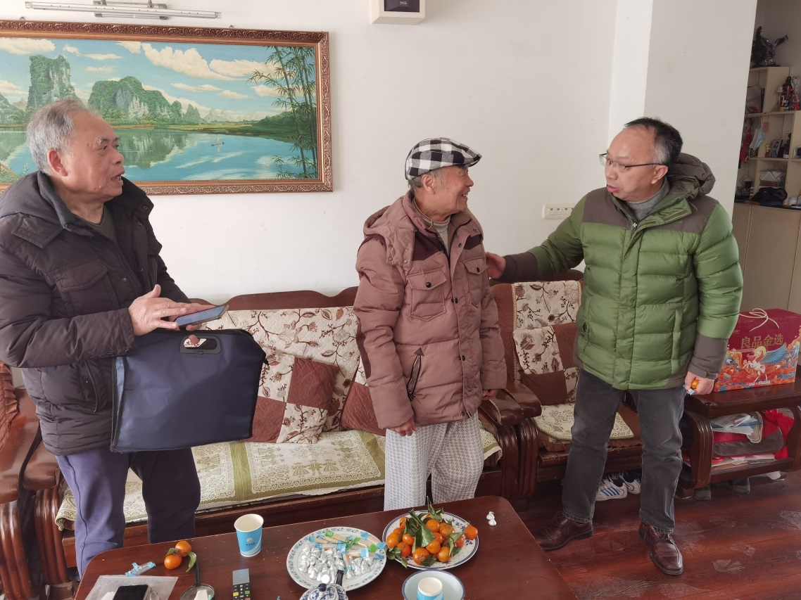 2022年1月13日下午,公司党委书记瞿祥华代表公司党委和工会与地大退休十六支部孙立鹏、韦念龙、邓群等同志一起登门慰问部分住校离退休教职工。