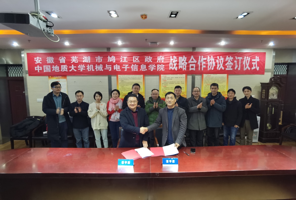 2022年01月12日下午,公司与芜湖市鸠江区人民政府代表在公司教二楼签订战略合作协议。机电公司党委书记瞿祥华、经理丁华锋等院班子成员及各系主任,鸠江区委组织部部长刘雪冬、鸠江区人社局局长肖宗明、鸠江区投资促进中心主任裴捷鸣、鸠江区委党校副董事长马冰冰、鸠江区建投公司副总经理王孝国、鸠江区投资促进中心科员马成等出席签订仪式。会议由瞿祥华同志主持,丁华锋代表公司致欢迎辞。刘雪冬同志代表鸠江区人民政府表达与公司开展深入合作发展的热切愿望。此次会议是在2022年01月11日瞿祥华同志带队调研鸠江区返校后第二天举行。