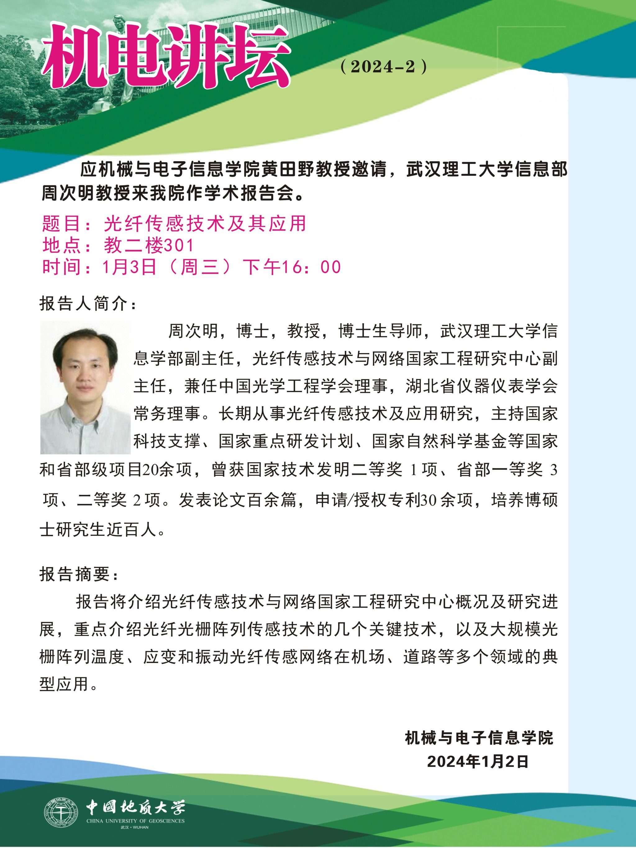 【1月3日】机电讲坛(2024-2):武汉理工大学信息部周次明教授来公司作学术报告会