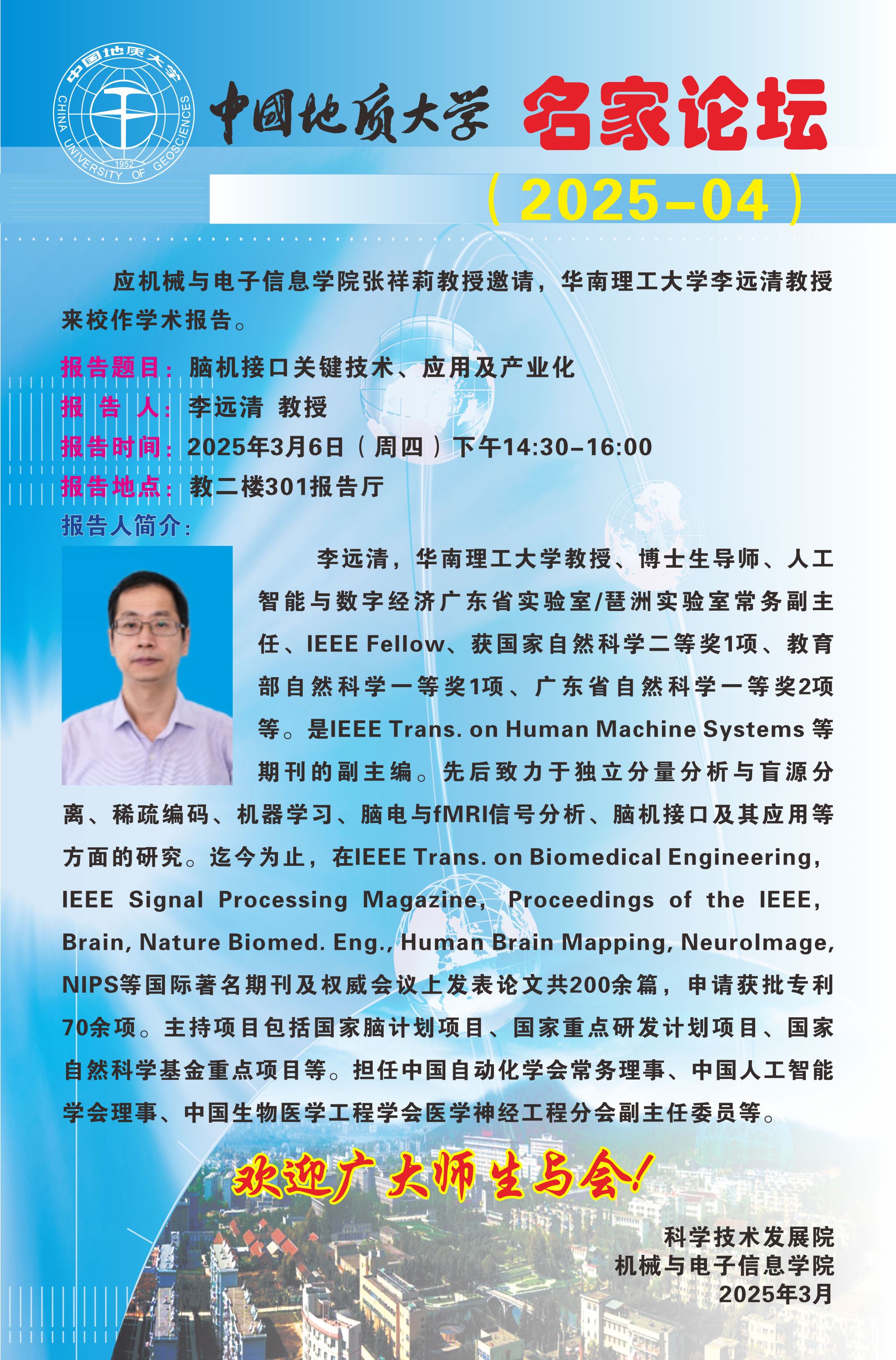 【3月6日】机电讲坛(2025-1):华南理工大学教授李远清来公司作学术报告