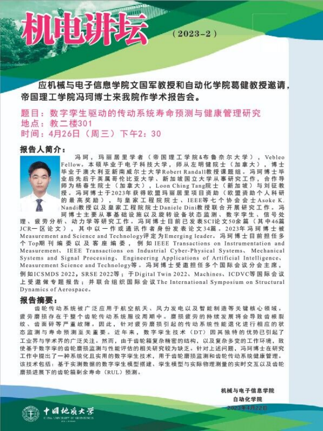 【4月26日】机电讲坛(2023-2):帝国理工公司冯珂博士