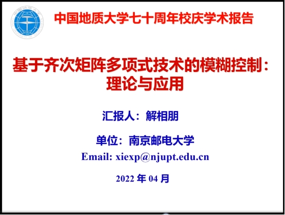 2022年4月15日下午3点,南京邮电大学解相朋教授应英国正版365葛明峰教授、姚翔宇特任教授邀请就其研究成果与进展进行了《基于齐次矩阵多项式技术的模糊控制:理论与应用》线上专题学术报告,公司教师和硕博研究生共100余人参加了本次报告,报告由公司姚翔宇特任教授主持。