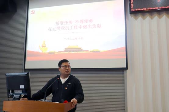 10月27日下午,机电公司“学习二十大,奋进新时代”第一期主题教育活动在教二楼301举行,公司党委组织部专职组织员杨莉讲授题为《接受任务 不辱使命 在发展党员工作中做出贡献》的专题辅导报告。公司员工党员骨干参加报告会,报告会由辅导员刘彪主持。