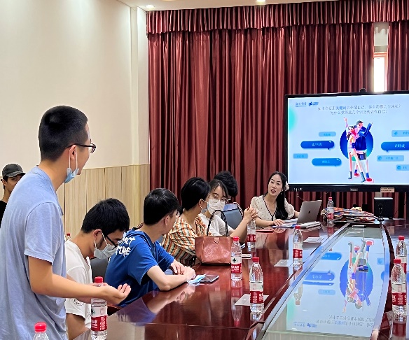 随后,海尔智家武汉园区COE学习发展接口人秦雯与同学们进行交流座谈会。在破冰环节中,同学们围绕“用关键词介绍自己”这一话题,积极分享个人经历。