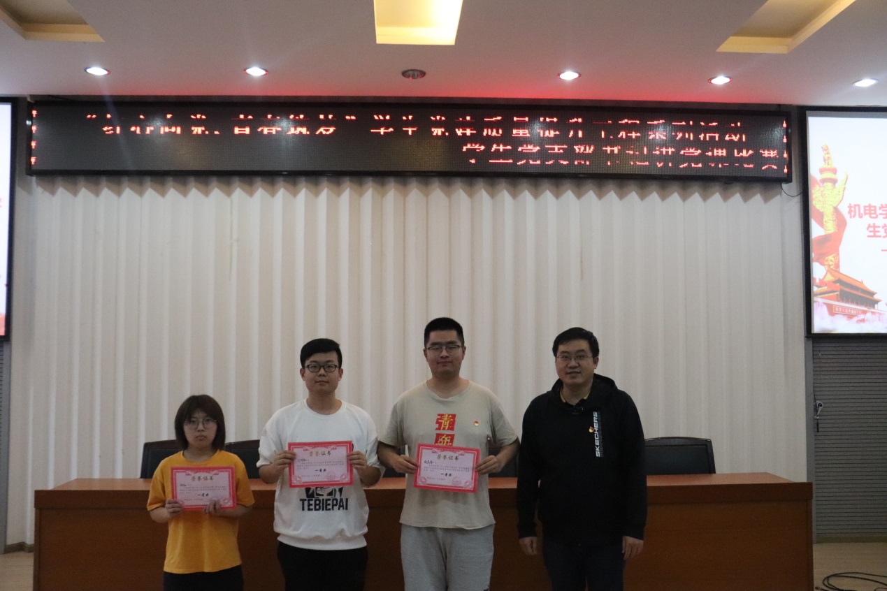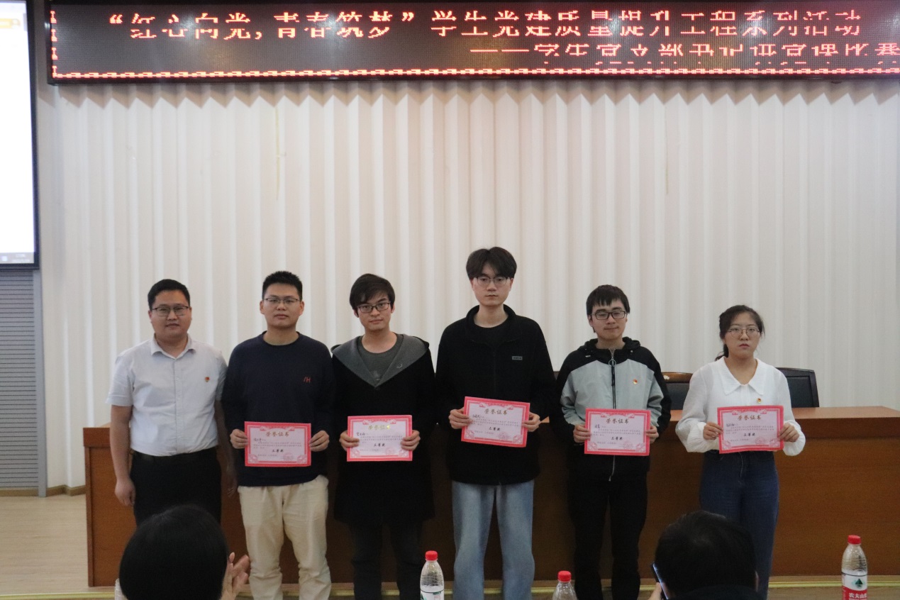 公司党委委员、机械系党支部书记韩光超为一等奖获得者颁奖