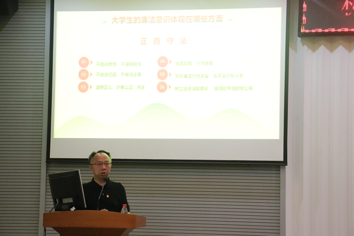 瞿祥华以“廉洁修身,成就梦想”为毕业生党员讲授党课。课上,瞿祥华从涉嫌严重违纪违法,接受组织调查的反面案例入手,指出廉洁的含义便是清廉洁白,老员工的廉洁意识应体现在诚信、勤俭、立志、正直守法以及树立正确世界观等方面。瞿祥华指出,作为老员工党员,应做到言行一致,表里如一,遵守廉洁自律准则,坚持道德高线,严守纪律底线,克己奉公。瞿祥华希望各位毕业生党员在今后的学习工作中,要识大体,顾大局,坚决与不廉洁行为决裂,与不法行为斗争,在根本上形成坚定的廉洁思想,提高统揽全局的能力,牢记“常修为人之德,常思贪欲之害,常怀律己之心”,真正做到清醒面对环境,正确对待权力,诚信科学研究,守住人生底线。