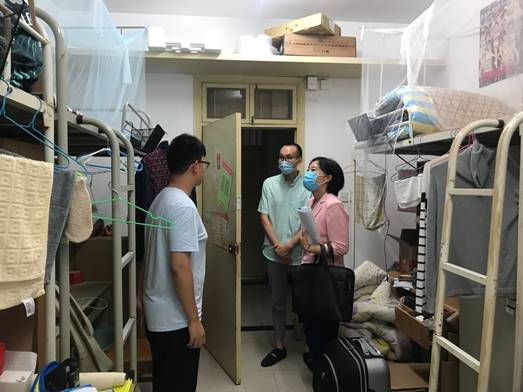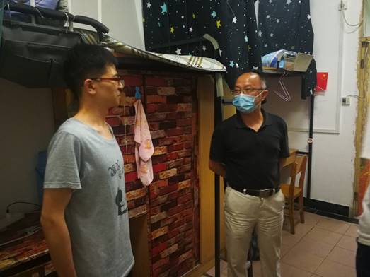 于晓舟、黄田野带队走访东区研8栋宿舍员工,详细了解员工返校后的生活情况,仔细查看员工宿舍卫生、消毒和通风情况,希望大家合理安排时间,加强锻炼,养成良好生活习惯。