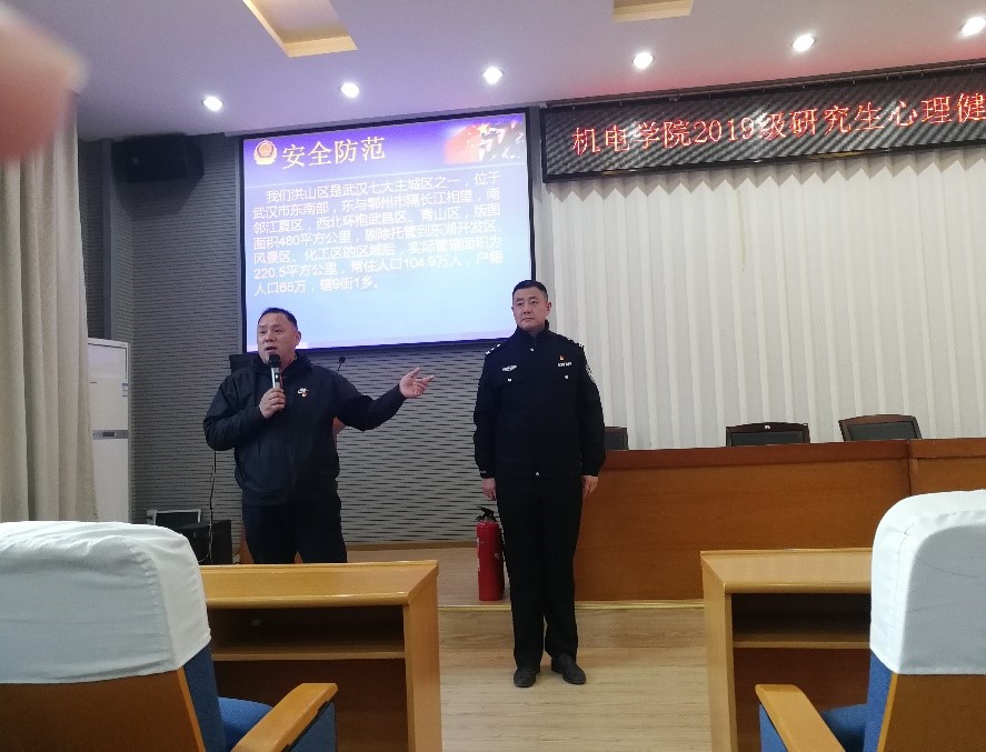 (通讯员 杨朔)12月6日上午,机电公司2019级研究生心理健康教育暨安全知识讲座于教二楼301室举行。老员工心理咨询中心周春燕老师、保卫处副处长单红峰、保卫处消防科科长周日恒担任主讲人。