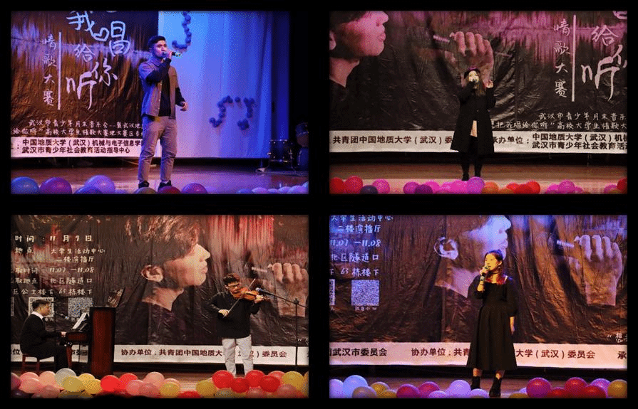 比赛在机电舞蹈队《BAAM》的激情热舞中拉开了序幕。11组选手按照赛前抽签结果,分为AB两组依次进行首轮献唱。选手们有自弹自唱的、有乐队伴奏的、有陶醉的“李健”、也有高音“李谷一”……选手们精彩的表演引得现场观众欢呼声、掌声不断,正如现场的同学感言:“这真称得上是‘地大好声音’。”