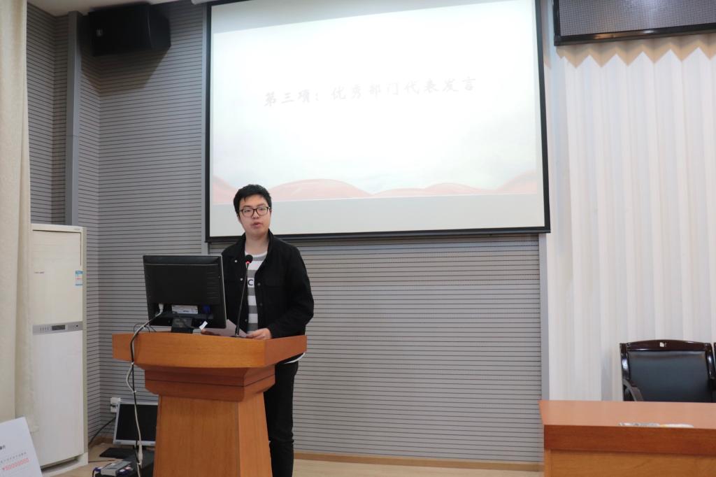 随后,由优秀部门代表张振南,优秀副部长代表王楠发言,他们分别讲述了2018年以来本部门取得的荣耀与困难,对部门成员的工作能力与态度给予了肯定和认可,也明确了部门今后的发展方向与计划。提到在未来的发展中将以提升服务意识,激发创新思维为关键去对待工作。