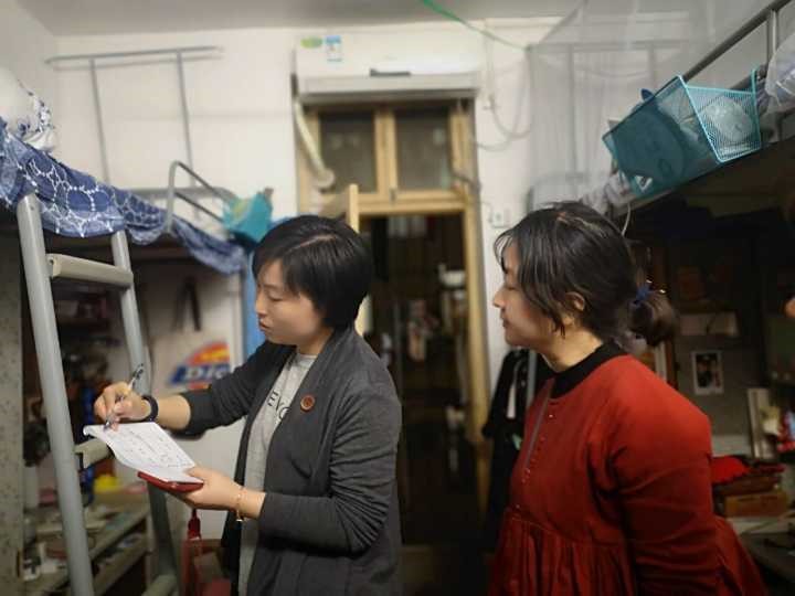 在走访员工宿舍前,老师们与宿舍管理员进行了近期宿舍管理方面工作的交流。之后在于晓舟的带领下,老师们主要对员工在寝室的寝室卫生、学习情况、身体状况、违章电器、夜间回寝等方面进行了询问与了解。此外,老师们走访了优秀员工宿舍,并对他们的内务整理和取得的成就做出了肯定与赞扬。
