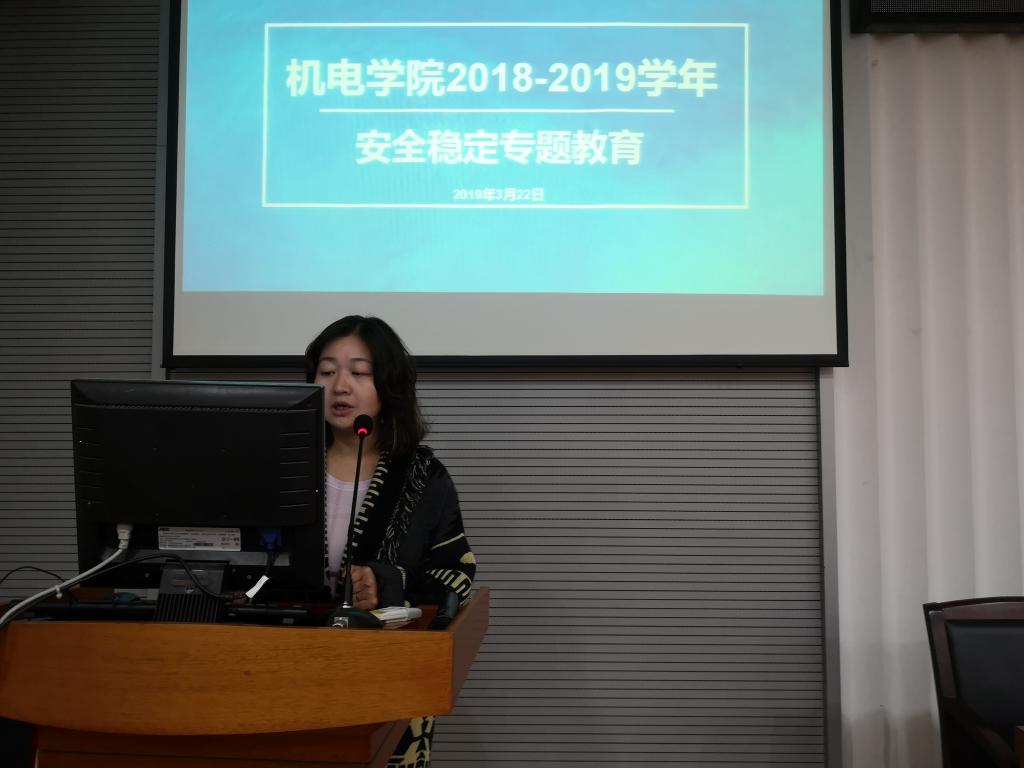 (通讯员 罗采薇 晁好喜 摄影 李红慧)3月22日中午12时30分,机电公司2018-2019学年安全稳定专题教育大会于教二楼301会议室准时开始。机电公司学工组老师罗采薇主持会议,杜育、许小康、丁钰峰以及机电公司全体新疆籍员工出席此次专题教育大会。
