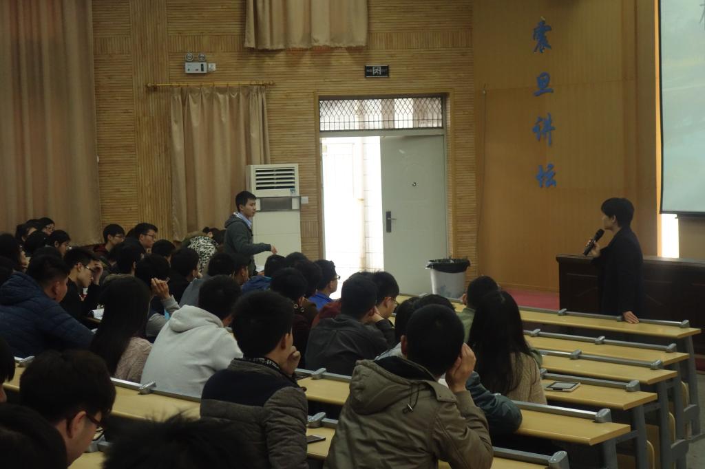 黄梅娇就学业情况、个人发展、文明安全等几个方面发言。她肯定了上学期各个专业所取得的进步,着重表扬了成绩优秀的员工和班级。2014级的员工很快就进入大四,未来发展是大家普遍关心的问题,黄梅娇依次对保研、考研、出国留学、求职就业等发展方向作出讲解和指导,提醒大家应早定目标、早做准备。最后,她提到了电信诈骗、校园贷的危害及预防,呼吁大家重视人身财产的安全;同时也要重视文明宿舍的创建和身心健康发展。