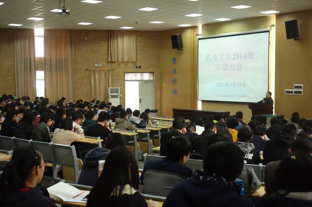 (通讯员 李文喆)3月10日下午16:00,机电公司2014级年级大会在教三楼109举行,公司党委副书记齐世学老师,院教务科潘利老师,2014级兼职辅导员霍莉霞及2014级全体员工参加会议。
