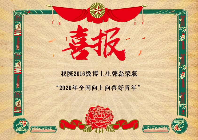 [2020.5]公司2016级博士生韩磊 荣获 “全国向上向善好青年”